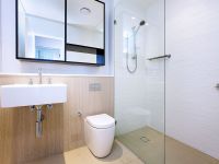 - Contemporary bathroom with walk in shower