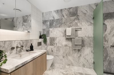 ‐ Sleek bathrooms with high-end fixtures and fittings including natural stone