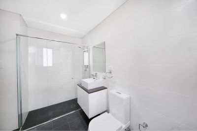 • Stylish, oversized bathroom with integrated laundry