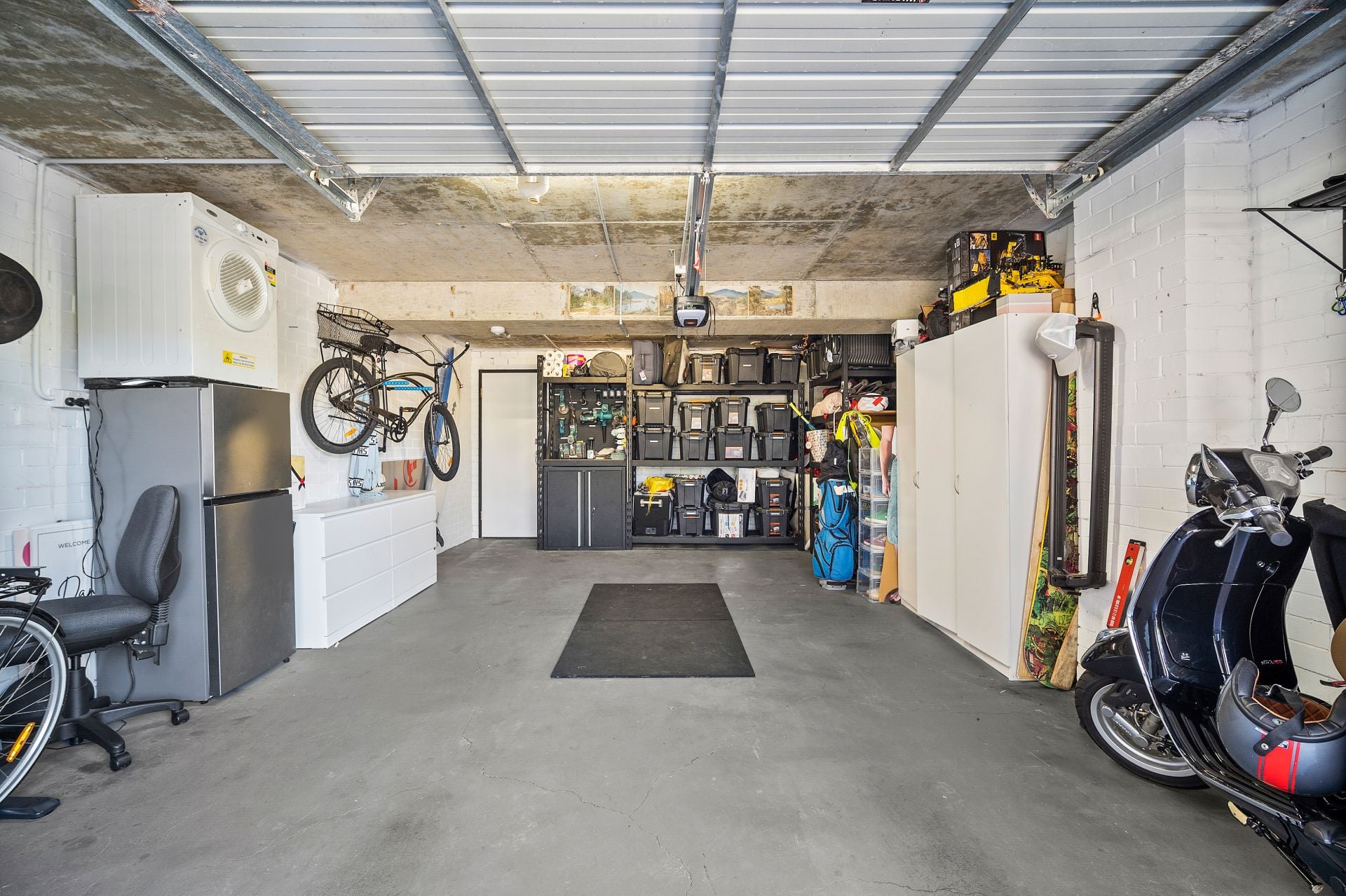 - Oversized 1.5 car lock-up garage with internal access plus additional car space