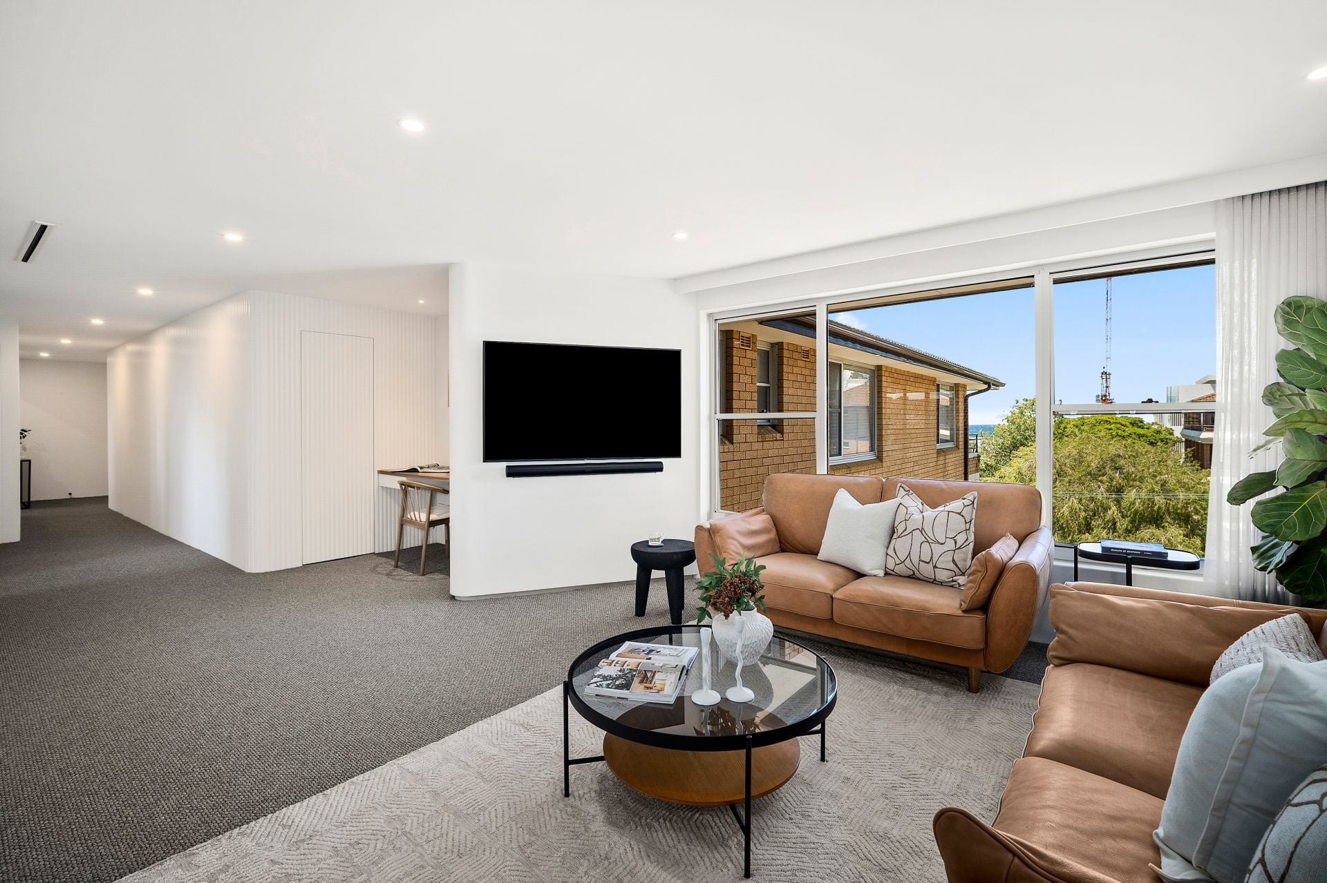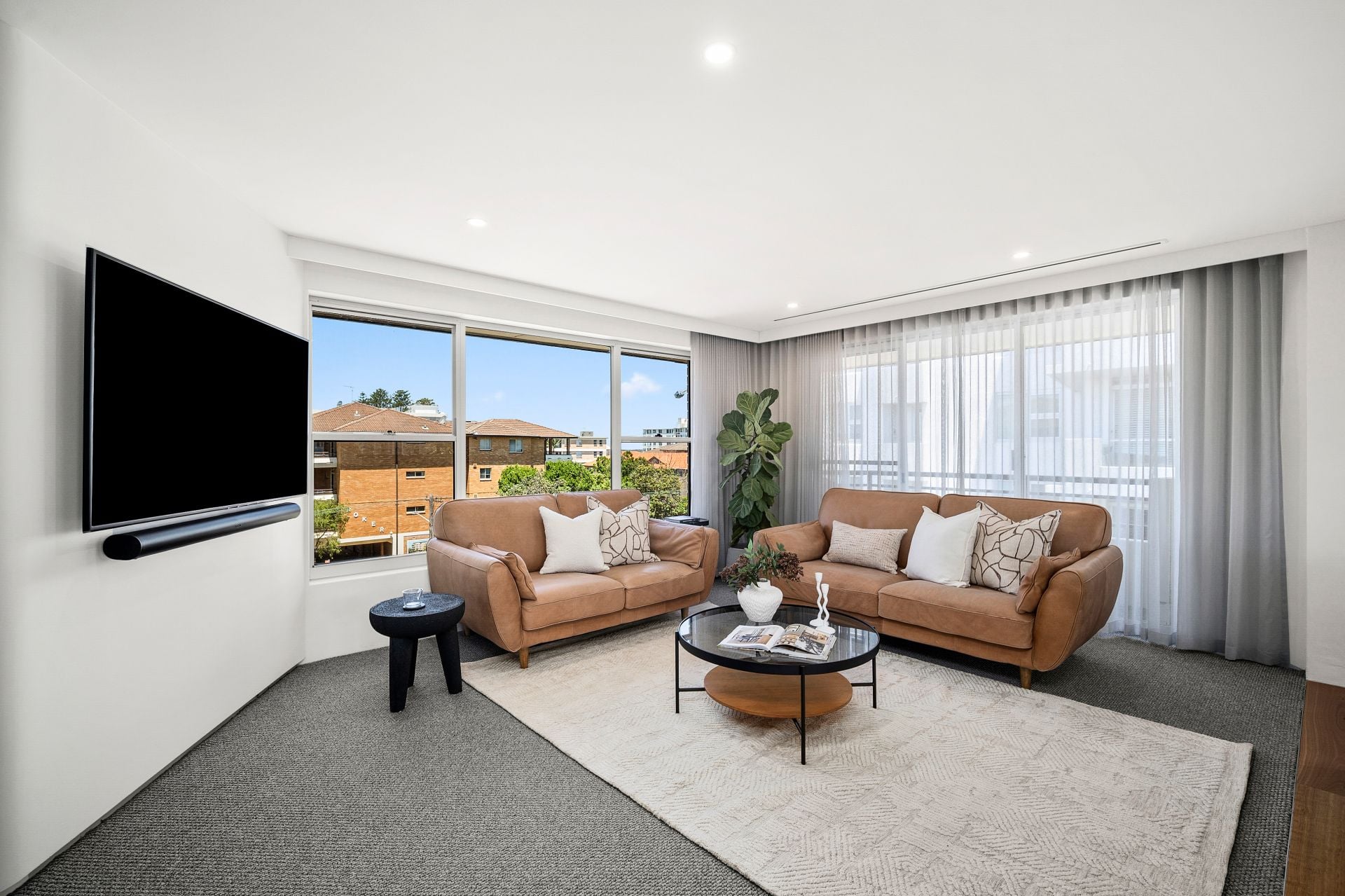 - Expansive open-plan lounge and dining area flowing to two balconies