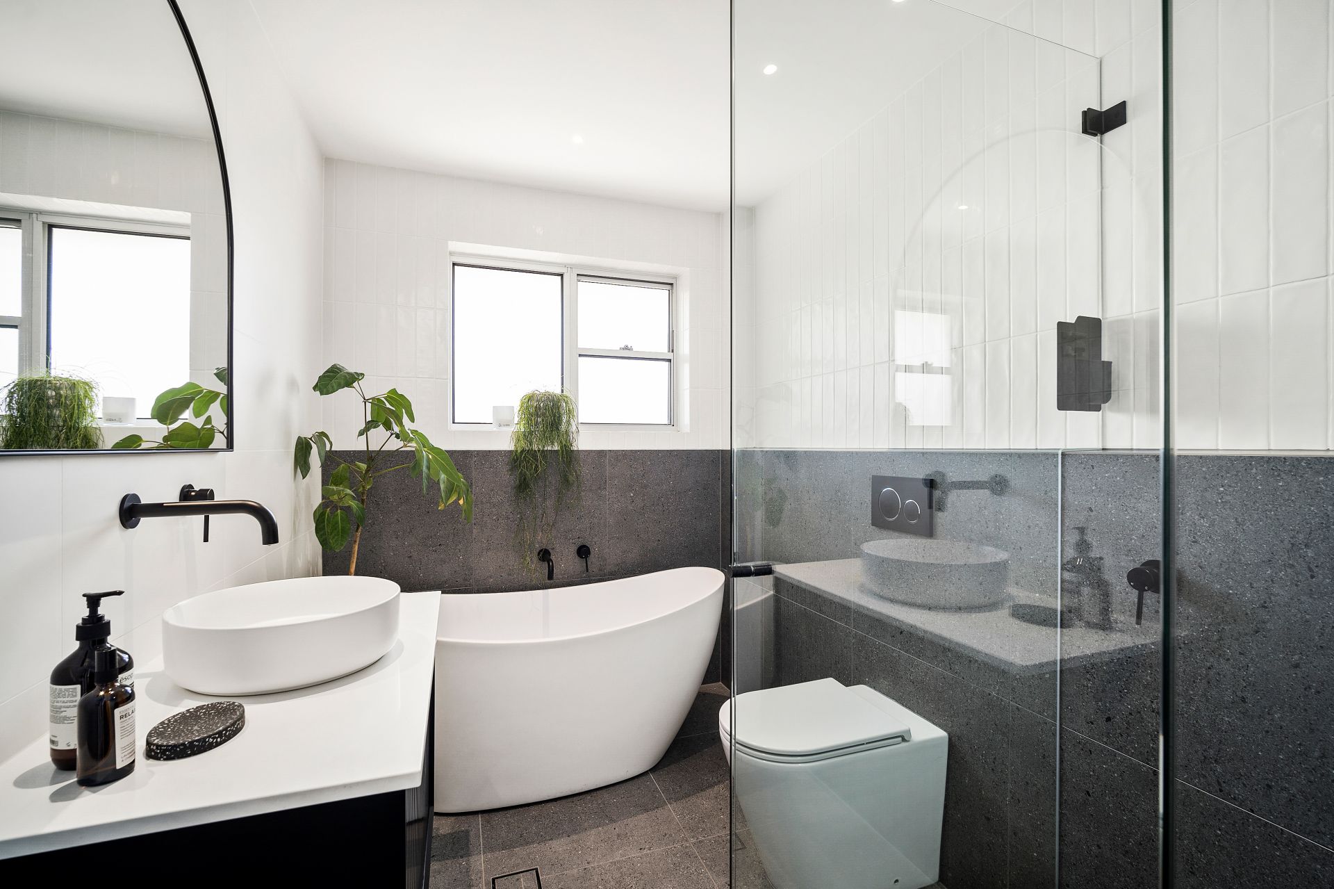 - Stylish bathroom with freestanding bath, separate shower and quality fixtures