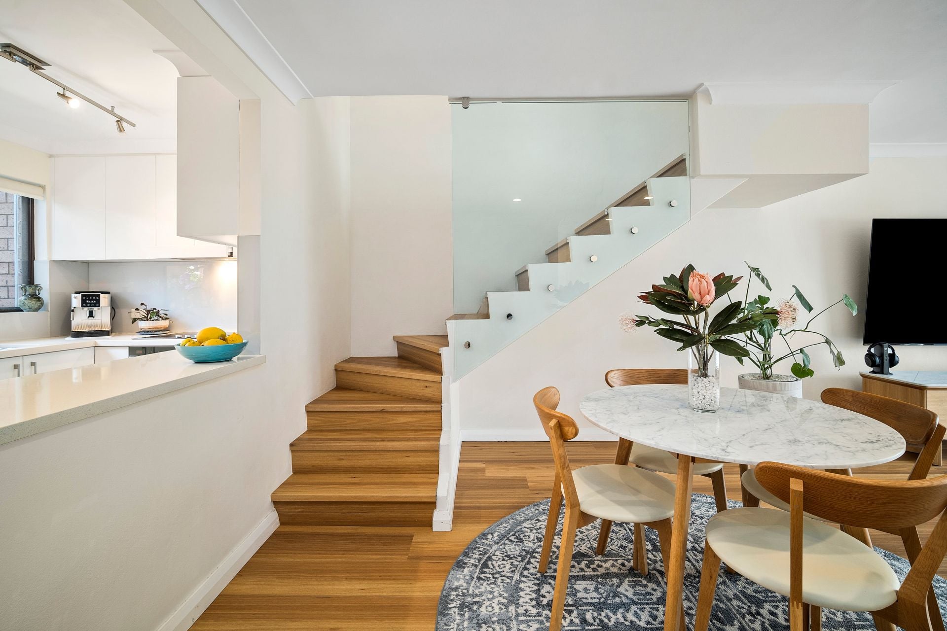 - Open-plan living and dining area with timber flooring flowing to the outdoors